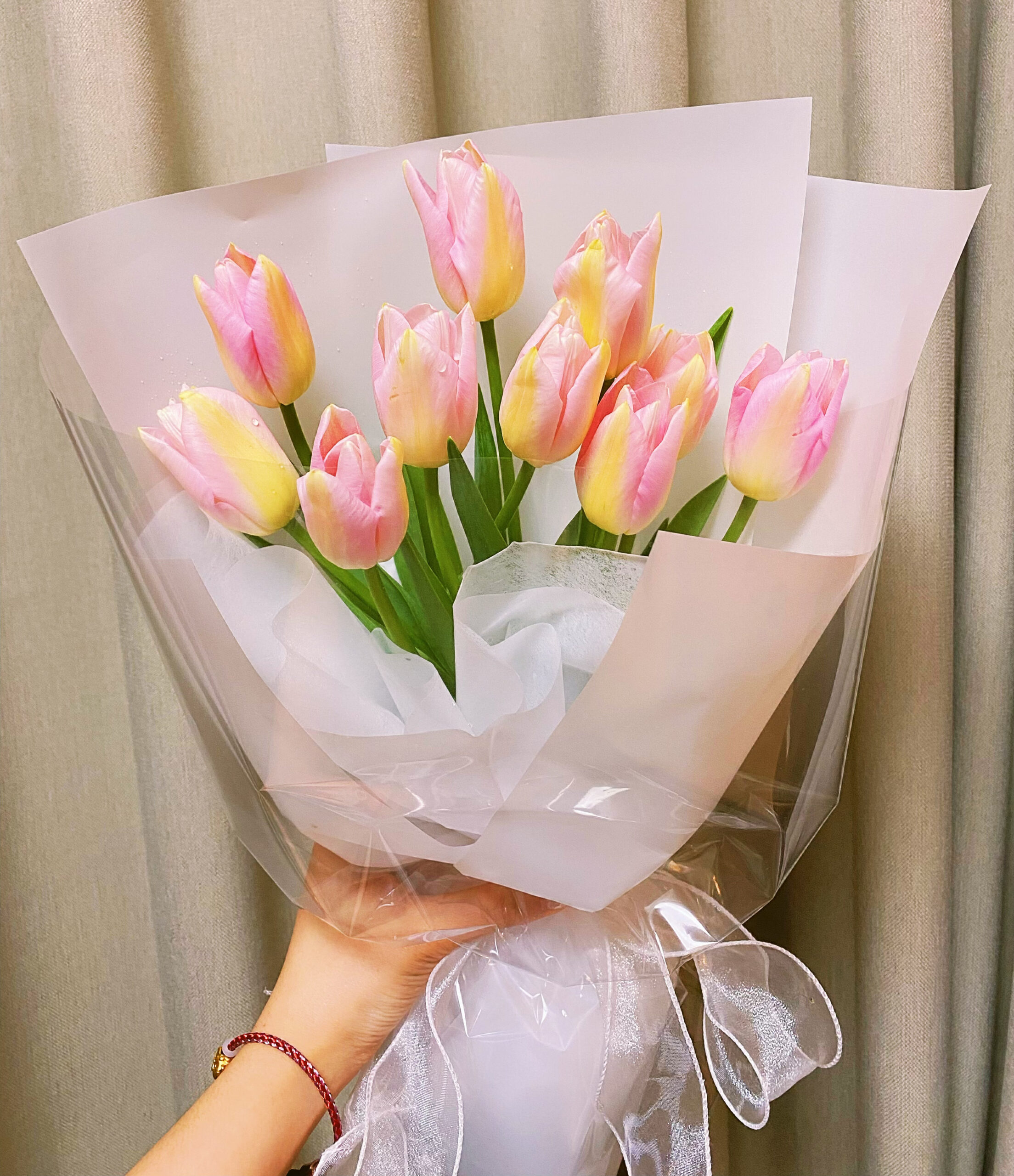 The “Tulip Dreams” bouquet is a breathtaking arrangement that embodies the essence of springtime beauty. Featuring a delightful mix of soft pink and pale yellow tulips, this bouquet radiates warmth and joy. The “Tulip Dreams” bouquet is a stunning gift that captures the heart and uplifts the spirit.